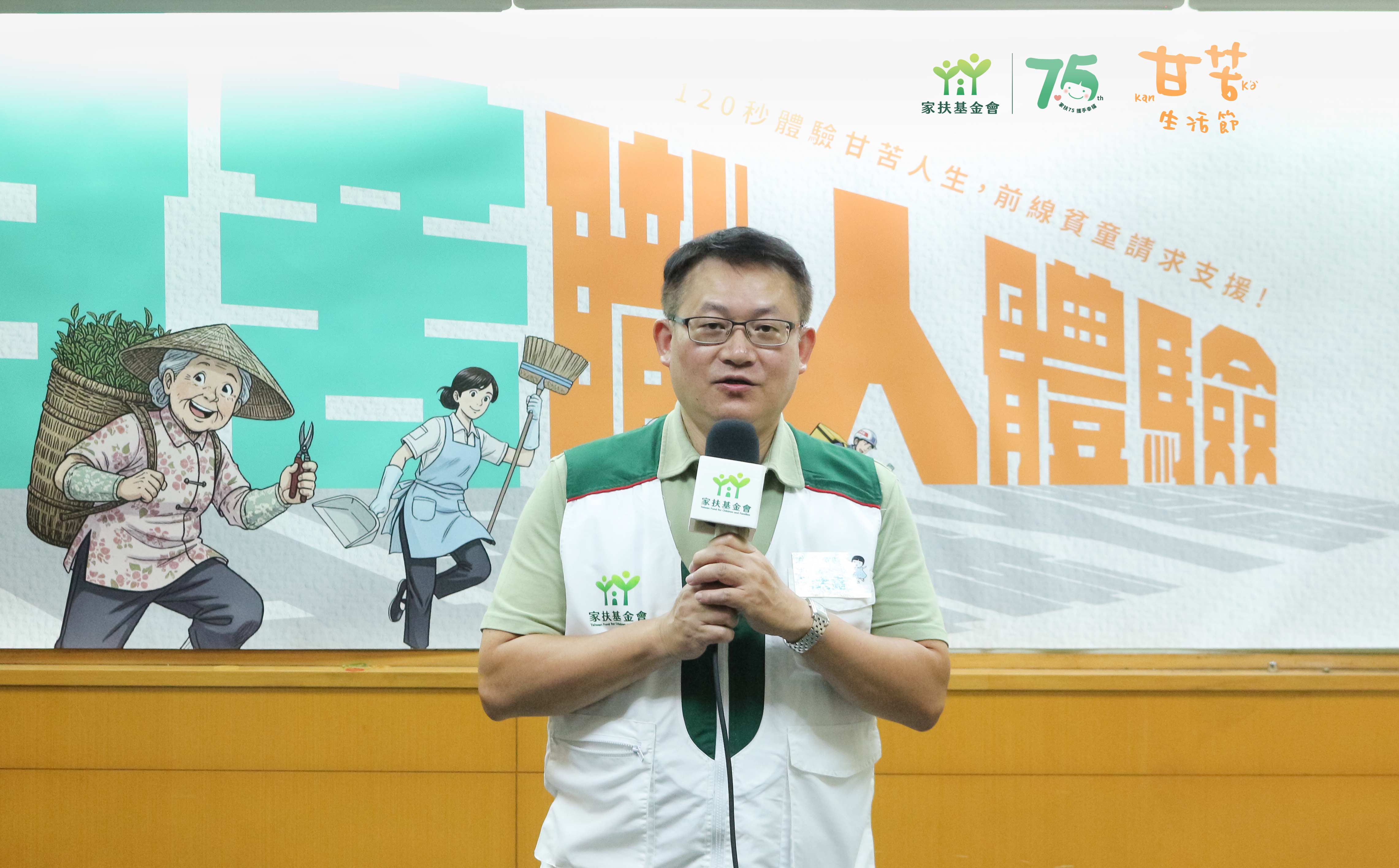 家扶基金會周大堯執行長表示,家扶推動「甘苦生活節」期盼攜手大家力量為弱勢家長賦能,同時藉由教育、能力建構,為下一代鋪路