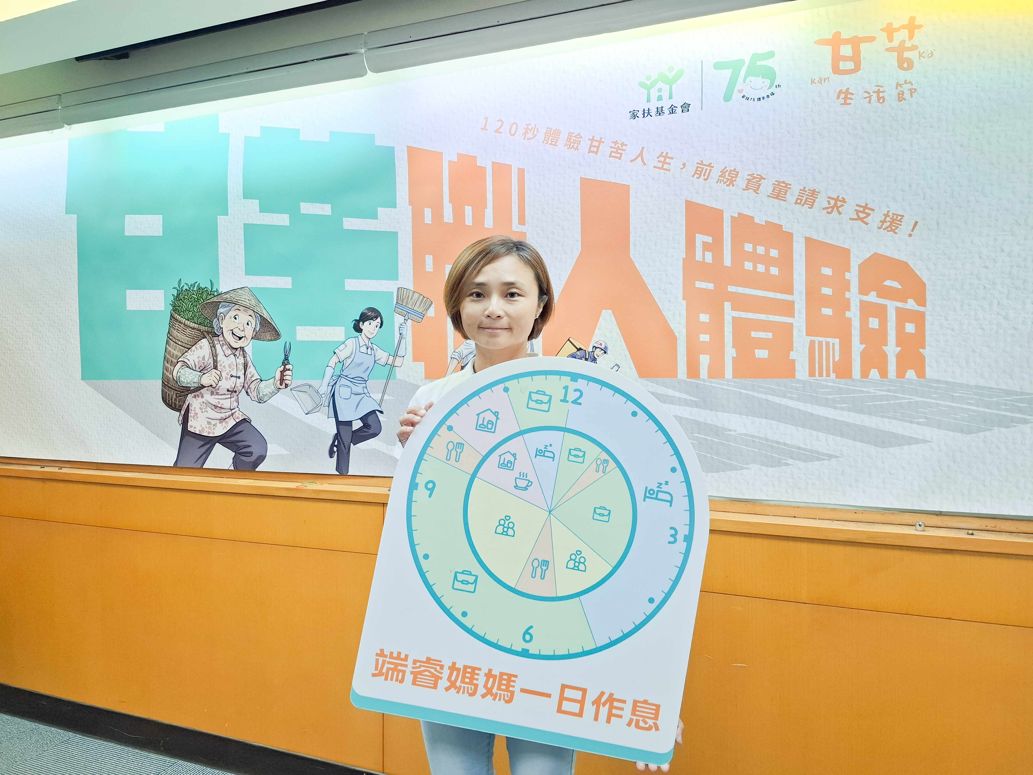 家扶基金會周大堯執行長表示:「曾有弱勢家長被貼上『不夠努力』的標籤。唯有走進他們的生活,才會發現不是不願意,而是缺乏支援。無法穩定工作的家長,奔波於多份兼職,不停在困境中打轉。家扶期盼攜手大家力量為家庭賦能,同時藉由教育、能力建構,為下一代鋪路,讓孩子不重蹈覆轍!」甘苦生活節以「甘苦職人體驗」為主題,推出線上小遊戲並串聯桃園、新竹、南台中、北台中、北台南、北高雄六地家扶中心,以弱勢家庭常見職業設計體驗情境,如組裝達人、竹林職人、抓龍(眼)高手等,讓大小朋友深入認識弱勢家長工作樣態,以及高工時、低收入的工作困境。改變從認識開始、助貧從小事著手,家扶「無窮世代計畫」,邀請社會大眾支持推動生活照顧、急難救助、教育補助與能力建構方案,幫助弱勢家庭與兒少看見改變的未來!