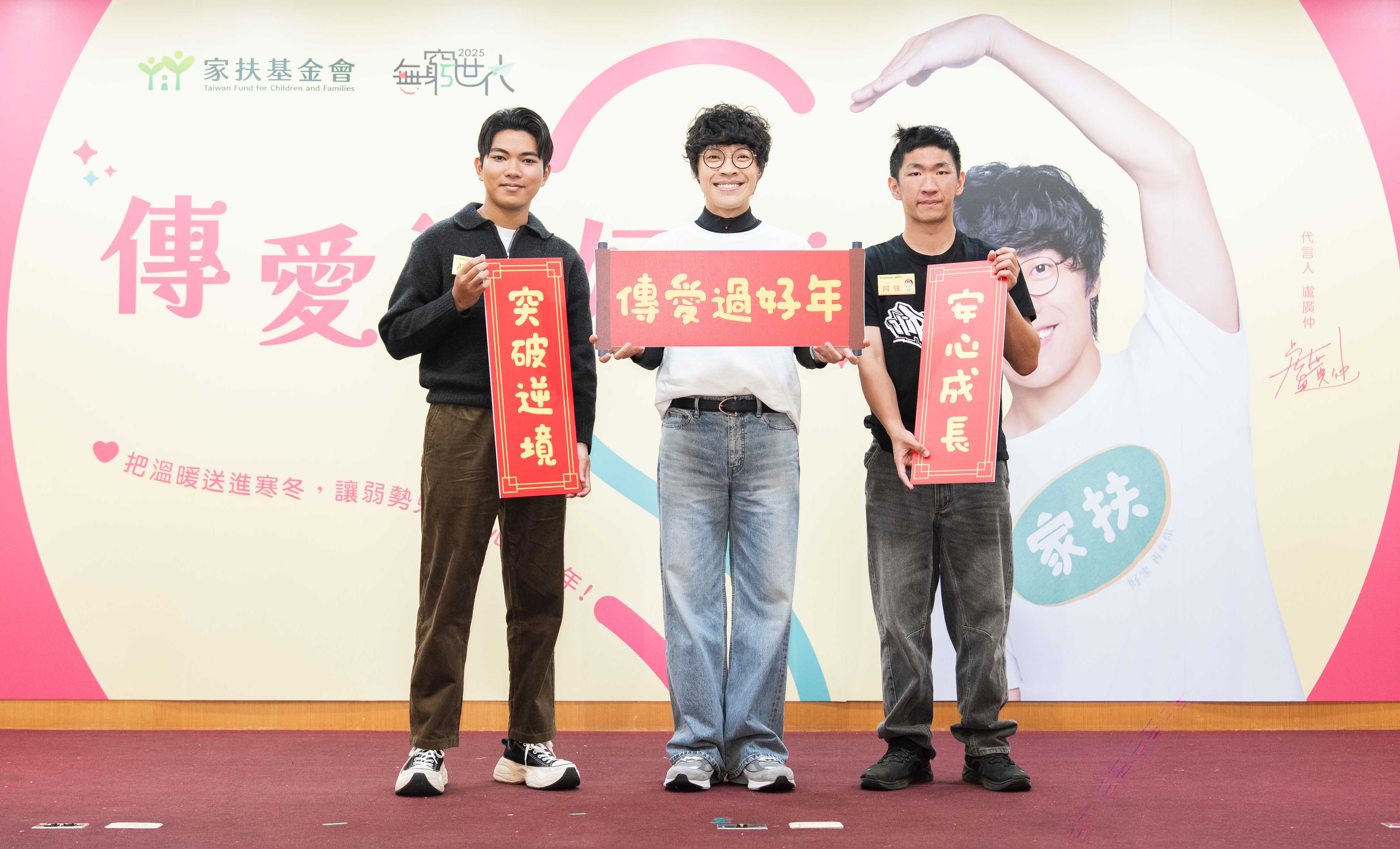 盧廣仲(中)任家扶「無窮世代-傳愛過好年」愛心大使,邀請社會大眾助孩子累積正向力量